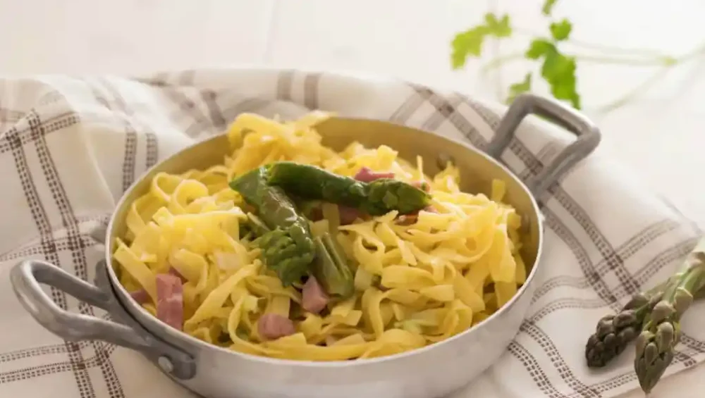 Tagliatelle bolognesi speck e asparagi con parmigiano DOP